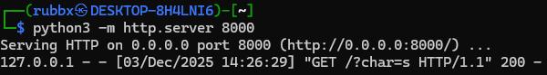 En mi caso, desplegu茅 el PHP en local por el puerto y el servidor de atacante en el 8000.