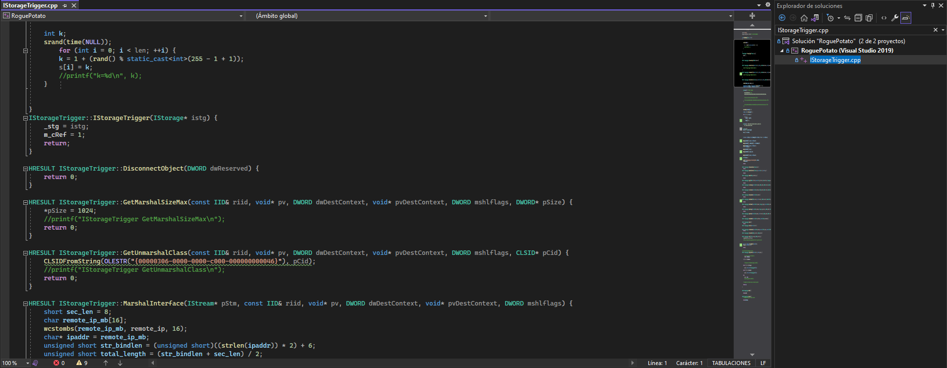 En el explorador de soluciones, busco por el el archivo IStorageTrigger.cpp. Su función principal es convertir cadenas de texto a formato bytes
