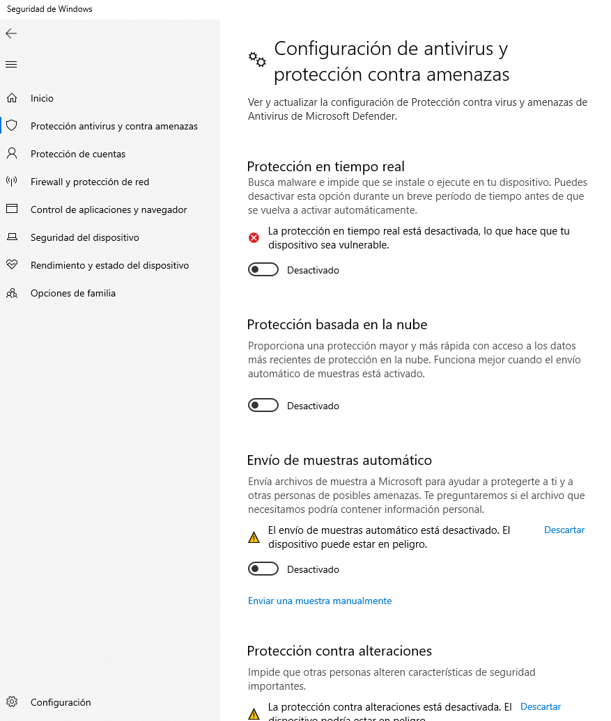 Copio el proyecto al escritorio y desactivo el Windows Defender para que no entre en conflicto