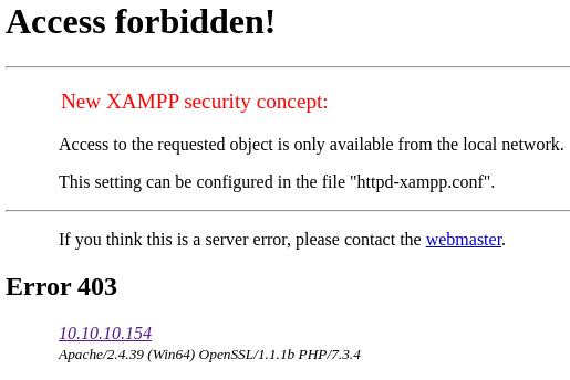 80/tcp open http Apache httpd 2.4.39 ((Win64) OpenSSL/1.1.1b PHP/7.3.4)