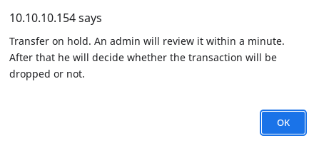 Un Administrador va a validar la transacción. Pruebo un XSS para tratar de obtener las credenciales del usuario Administrador. Para ello necesito saber como se están tramitando las cookies de sesión