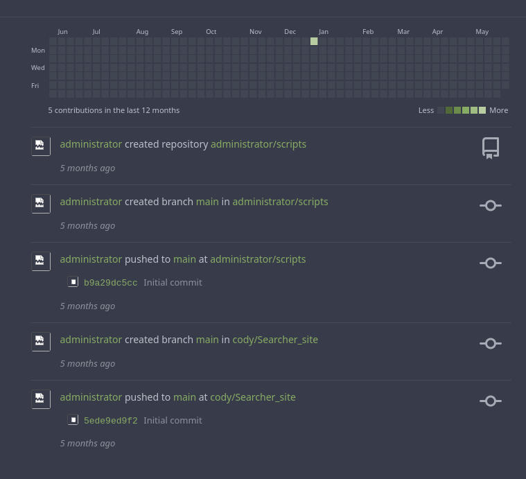 Las credenciales administrator:yuiu1hoiu4i5ho1uh se reutilizan para el Gitea