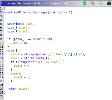 Se está llamando a otra función que se encarga de comparar la cadena que se le pasa como primer parámetro. En caso de que este vacía, contenga alguno de esos caracteres especiales o el tamaño sea igual el valor de la cadena pasado a entero, el programa no avanza. Si todo va bien, se hará una llamada al /bin/ls