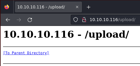 /upload (Status: 301) [Size: 150] [--> http://10.10.10.116/upload/]