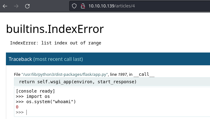 A travΓ©s de un error, es posible llegar a ejecutar comandos abusando del /console expuesto