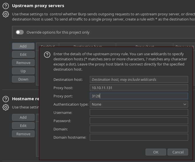 Añado una configuración el BurpSuite para poder pasar por el Squid Proxy