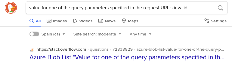 <Message>Value for one of the query parameters specified in the request URI is invalid.