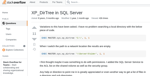 Como por detrás está MSSQL, en caso de que esté habilitada la función xp_dirtree, podría intentar cargar un recurso alojado de mi lado, y así interceptar un hash NetNTLMv2, que puedo tratar de crackear por fuerza bruta