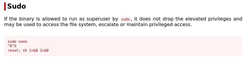 Dentro del editor nano, existe una forma de ejecutar comandos, según GTFObins