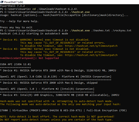 El crackeo es muy lento, pero al final encuentra la contraseña, está en la novena línea
