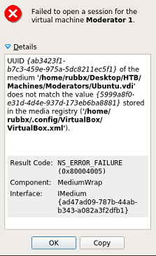 Si intento ejecutar de nuevo la máquina, me aparece un error y eso es porque hay que cambiar el UUID de la nueva imagen en el archivo de configuración y el ubuntu server no tiene versión de prueba, así que descargo una de escritorio