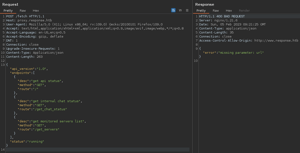 http://10.10.11.163 [302 Found] Country[RESERVED][ZZ], HTTPServer[nginx/1.21.6], IP[10.10.11.163], RedirectLocation[http://www.response.htb], Title[302 Found], nginx[1.21.6]