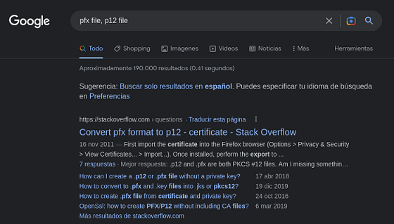 Como un certificado se llama staff.pfx, pruebo a introducir esa ruta, y efectivamente existe por SSL. Me pide que proporcione el certificado