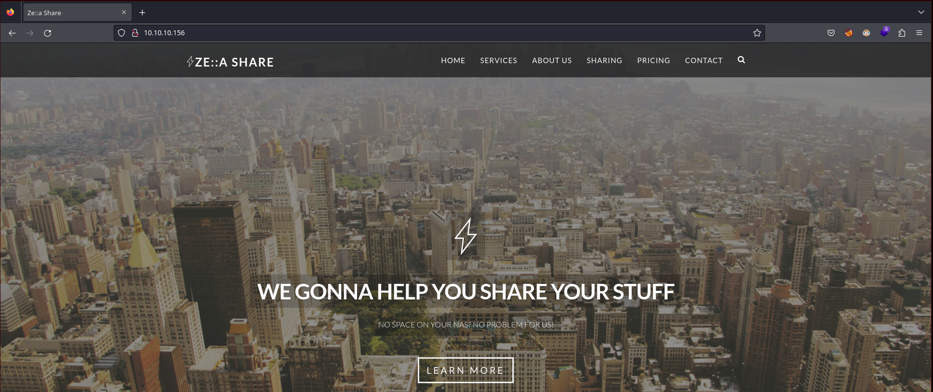 http://10.10.10.156 [200 OK] Bootstrap, Country[RESERVED][ZZ], HTML5, HTTPServer[nginx], IP[10.10.10.156], JQuery, Script[text/javascript], Title[Ze::a Share], ngin