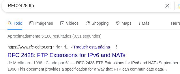 En una sección dan una pista de que se está utilizando una extensión para el FTP que opera por IPv6